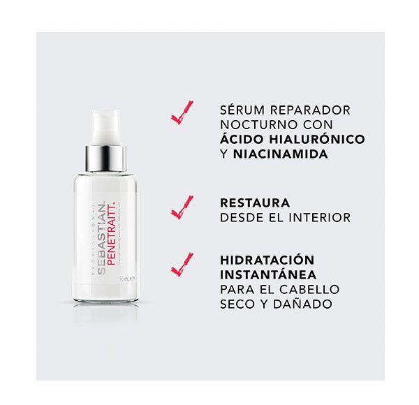 El sérum reparador nocturno con ácido hialurónico y niacinamida actúa intensamente durante la noche, ayudando a restaurar el cabello desde el interior. Al despertar, tu melena luce más suave, sedosa y revitalizada, perfecta para crear peinados sin restricciones.