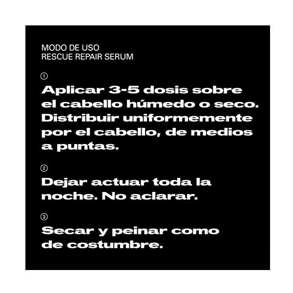 Dispensa de 3 a 5 dosis de sérum sobre las manos y extiende de medios a puntas. Cepilla el cabello y deja actuar mientras duermes. No enjuagues. Al día siguiente, peina con normalidad.