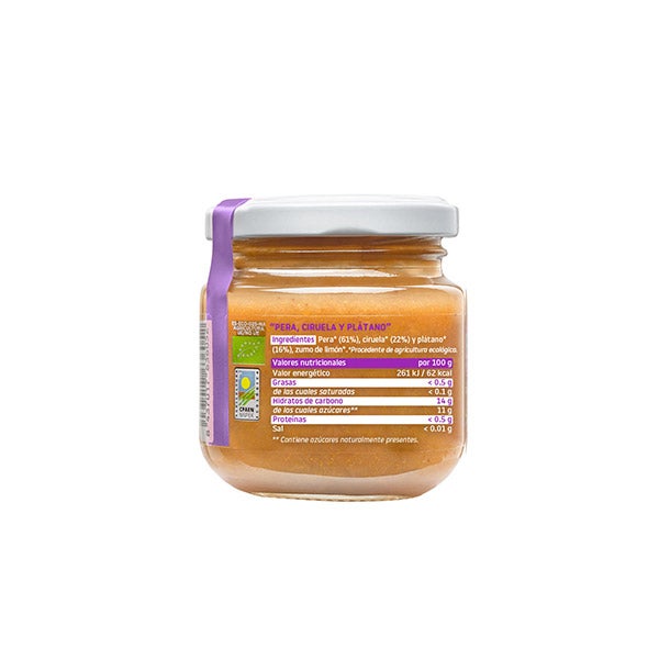 El tarrito de pera, ciruela y plátano de Smileat renueva la fórmula de su anterior versión de tres frutas. Ahora es aún más sabroso gracias a la incorporación de la ciruela.