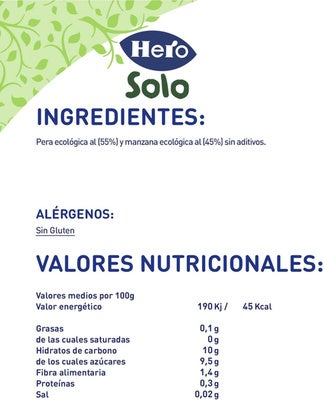 Hero Baby SOLO Bio Pera y Manzana 120 gr