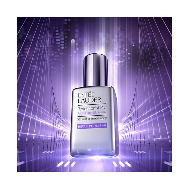 Con nuestro Doble Complejo de Hexapéptidos+, Rapid Firm + Lift Serum contiene Hexapéptidos 8 + 9, que ayudan a que la piel regenere fortaleza y sostén, impulsando la reconstrucción de su red de juventud para un aspecto más firme y elevado.