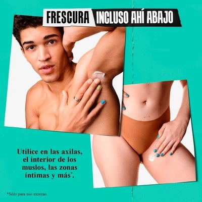Su textura transforma de crema a polvo, aportando confort debajo de los brazos y manteniendo la piel con sensación fresca y seca.