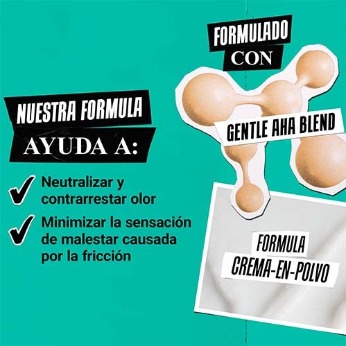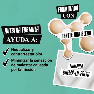 La fórmula combina una suave mezcla de AHAs que contribuye a reducir el olor en áreas delicadas e íntimas del cuerpo.