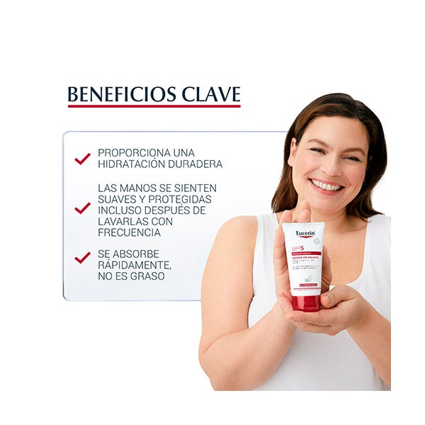 Utilice Eucerin pH5 Skin-Protection Crema de manos tantas veces como lo considere necesario. Masajee suavemente hasta que el producto se absorba por completo.