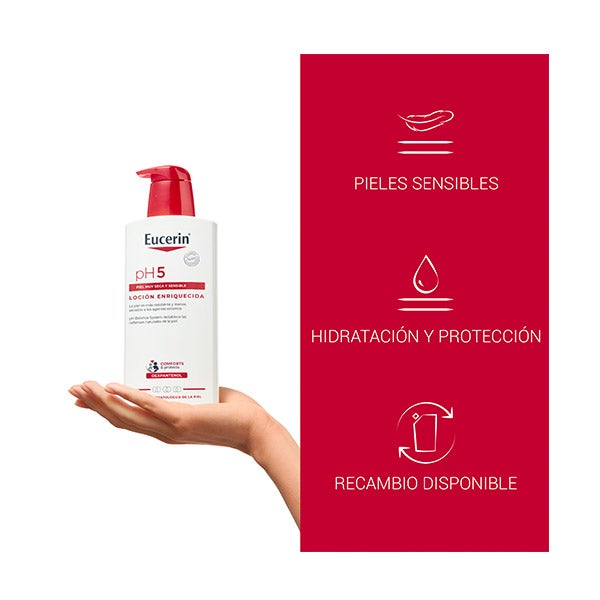 Eucerin pH5 Loción Enriquecida Corporal F puede utilizarse en pieles con tendencia a alergias de tipo 1, como la rinitis alérgica, y es adecuada para niños a partir de tres años. Antes de aplicar cualquier producto nuevo, se aconseja realizar una prueba previa en la parte interior del codo.