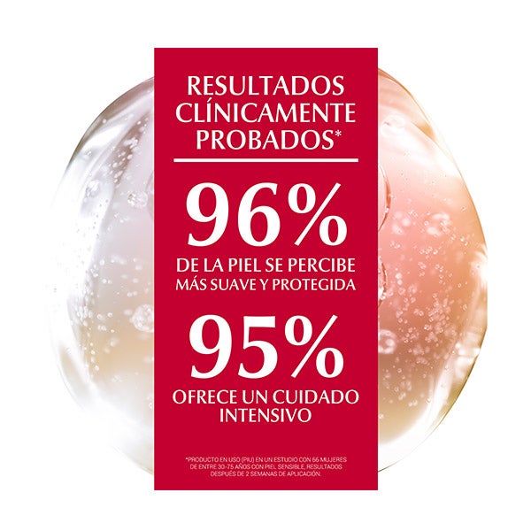 En una prueba con 164 participantes, entre el 91 y el 96 % de las mujeres afirmaron que, tras dos semanas de uso, la piel se percibe más suave y protegida, con hidratación inmediata y cuidado intensivo.