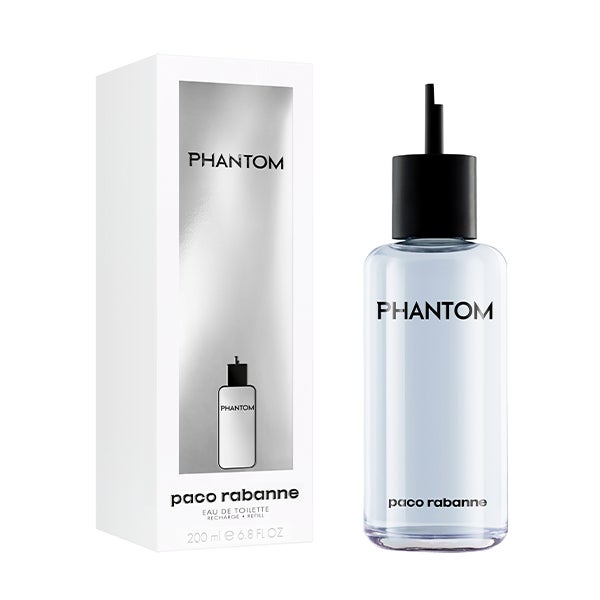 Revive las emociones que provoca el perfume Phantom con su práctico formato recargable de 150 ml, que puedes reutilizar llenándolo fácilmente con esta recarga de 200 ml.