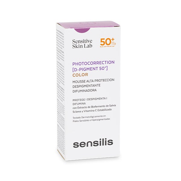 PHOTOCORRECTION [D-PIGMENT 50+] es una mousse con SPF50+ que ofrece una protección muy alta frente a los rayos UVA, UVB y la luz azul, ayudando a corregir las pigmentaciones en pieles sensibles con tendencia a las manchas.