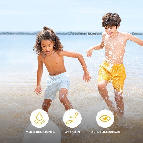 Loción en spray para niños: fórmula en spray de alta protección pediátricamente aprobada, indicada a partir de los 12 meses.