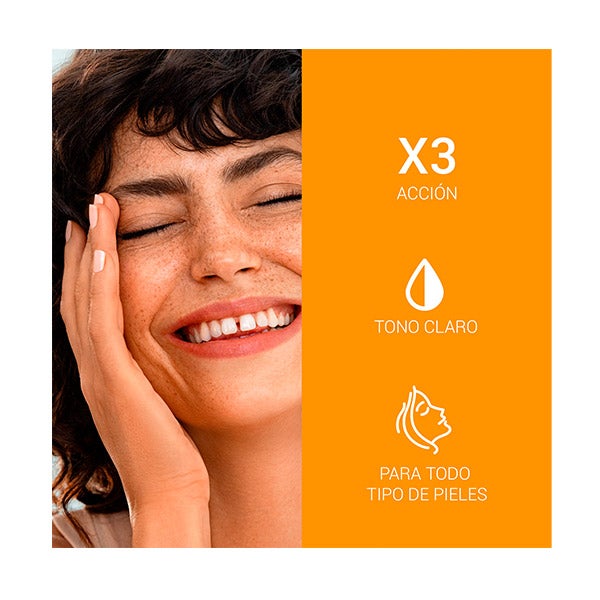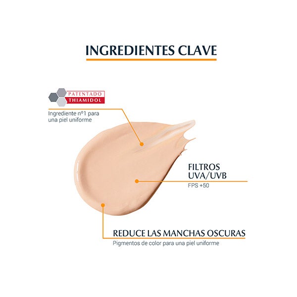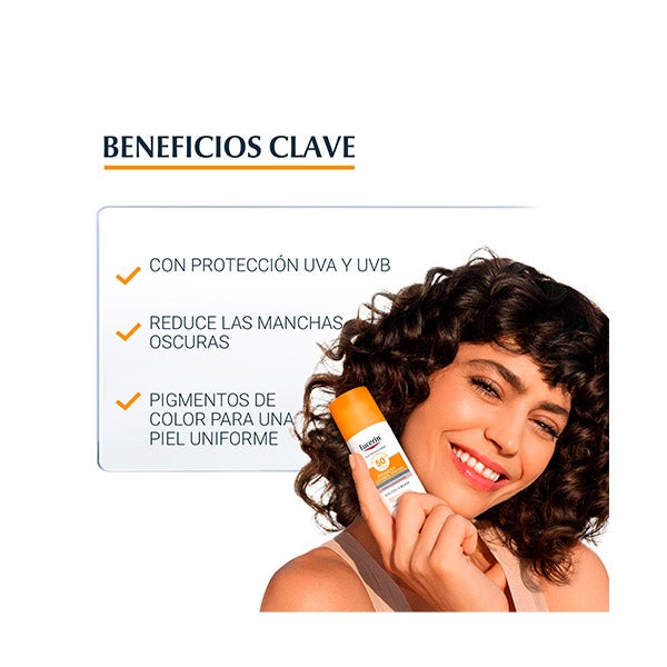 Fotoprotector con color claro FPS 50+, especialmente diseñado para quienes tienen manchas de hiperpigmentación o son propensos a desarrollarlas, ayudando a disminuirlas y a evitar su aparición.
