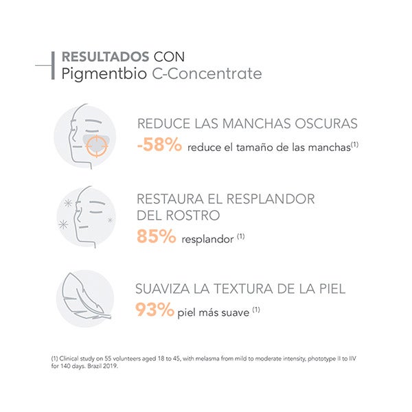 Cuando se emplea en monoterapia, Pigmentbio C-Concentrate actúa como un tratamiento de entre 1 y 3 meses.