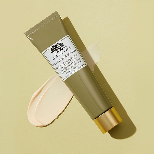 Prepara tu piel aplicando previamente el suero antiedad Plantscription™. Extiende una pequeña cantidad equivalente a un guisante del Plantscription™ hidratante nocturno con retinol, procurando no acercarte al contorno de ojos.