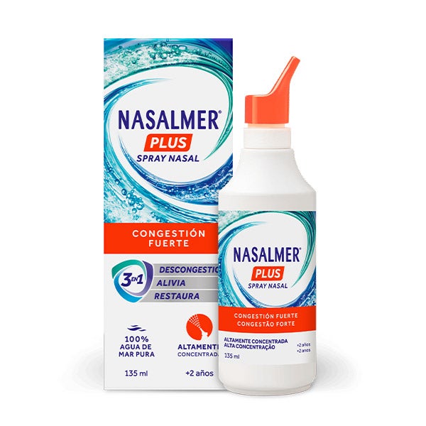 Nasalmer Plus Spray Nasal es una solución hipertónica elaborada con agua de mar natural. Su fórmula está diseñada para favorecer la limpieza, aliviar la congestión y mantener el cuidado de las vías nasales.