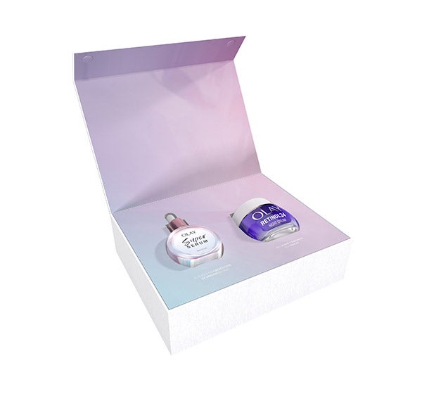 Con este set de OLAY, disfruta de la crema hidratante nocturna Retinol24, que se absorbe en profundidad en las capas externas de la piel. Ayuda a reducir visiblemente las líneas de expresión y las arrugas, aportando mayor suavidad y un aspecto radiante al cutis.