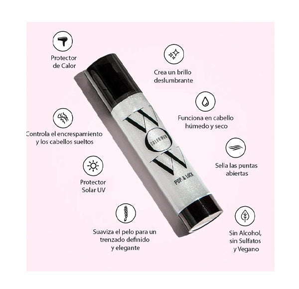 El suero brillante reduce el encrespamiento, cierra las puntas abiertas, mantiene la intensidad del color, ofrece defensa frente a los rayos UV y actúa como un eficaz protector térmico.