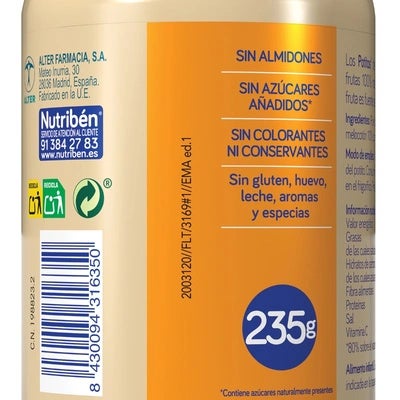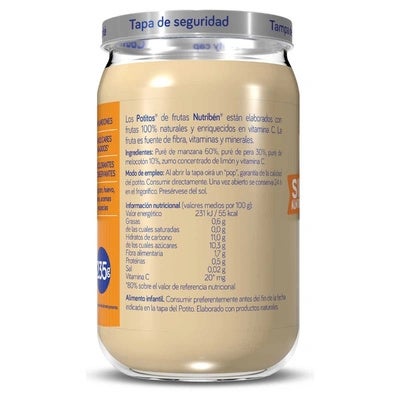 POTITO FRUTAS VARIADAS SIN ALMIDÓN 235 G ¡Potitos® es una marca registrada de Nutribén®! Estos Potitos® con mezcla de frutas ofrecen una receta sin almidón, preparada con manzana, pera y melocotón, pensada para alimentar a tu bebé desde los 6 meses dentro de una dieta equilibrada.