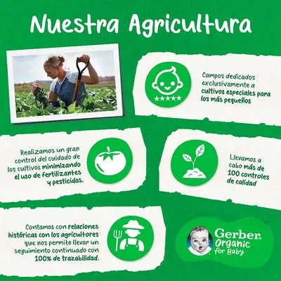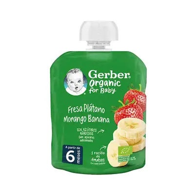 GERBER Organic Fresa Plátano 90g es una opción nutritiva y práctica que acompaña el crecimiento de tu bebé con el mejor sabor de la fruta. ¡Porque su bienestar es lo más importante! ????