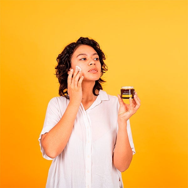 Extiende una pequeña porción del producto sobre el rostro limpio y tonificado.