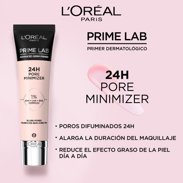 El nuevo Prime Lab 24h Pore Minimizer es un primer dermocosmético que suaviza la apariencia de los poros durante 24 horas, prolonga la duración del maquillaje y contribuye a mejorar la textura de la piel tras 4 semanas de uso.