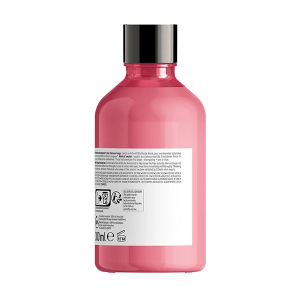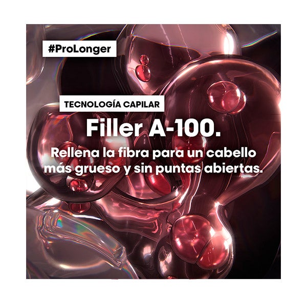 Gracias a la tecnología patentada FILLER A-100 y a la acción de los aminoácidos, el champú renovador de la Serie Expert Pro Longer se convierte en una solución ideal para el cabello con puntas afinadas. Al emplearlo junto con el Concentrado engrosador de Puntas, las puntas se ven más resplandecientes, resistentes y visiblemente más densas por más tiempo.