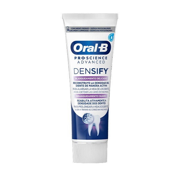 La pasta dentífrica Oral-B Pro-Science Densify contribuye a incrementar la densidad del esmalte con cada cepillado, ayudando a conservar la buena salud de tus dientes.