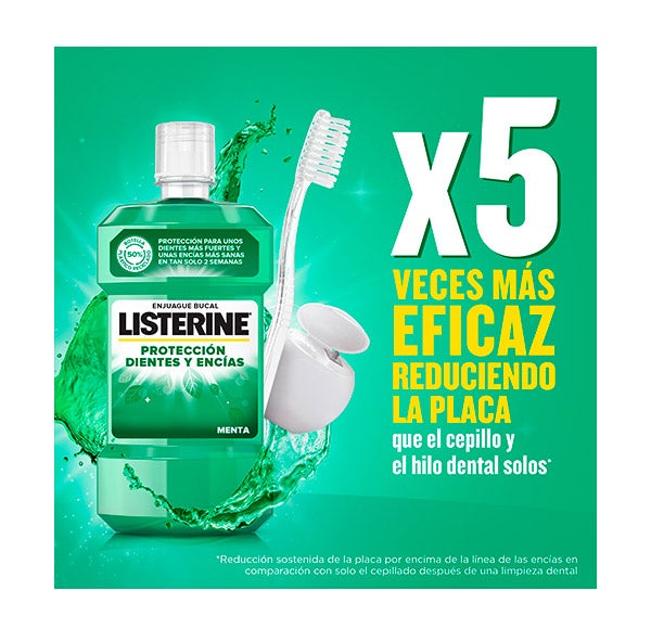 El enjuague bucal Protección Dientes y Encías ofrece un cuidado integral que mejora la salud bucodental mediante una triple acción fortalecedora: