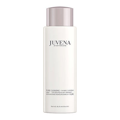 Calming Cleansing Milk de Juvena es una leche limpiadora calmante con extracto de lirio de agua calmante y el exclusivo complejo de preparación de vitaminas que limpian y confortan la piel al tiempo que mantienen su humedad. Contiene un complejo de vitaminas (B3, B5 y B6, C pura y E pura) que estimulan la micro-circulación, mejoran la capacidad de absorción de productos nutritivos, además tiene un efecto hidratante y de tratamiento. Por su parte el extracto de Nenúfar ayuda a calmar la piel y tiene un efecto balsámico. La menta acuática limpia, purifica y refresca la piel.