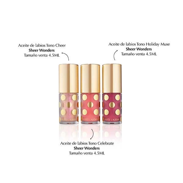 Durante estas fiestas, obsequia (o date) alegría pura convertida en color. Tres Aceites de Labios con matices favorecedores, un brillo jugoso y hasta 12 horas de hidratación continua.