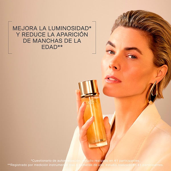 Con cada uso, esta esencia de reflejos dorados alivia la sensibilidad y ofrece un efecto calmante inmediato, junto con hidratación intensa y una apariencia más luminosa. Asimismo, fortalece las defensas cutáneas frente a agresores externos. Con la aplicación continua, contribuye a mejorar la suavidad, firmeza y elasticidad de la piel, favoreciendo su regeneración a largo plazo. La piel luce revitalizada, uniforme y radiante.