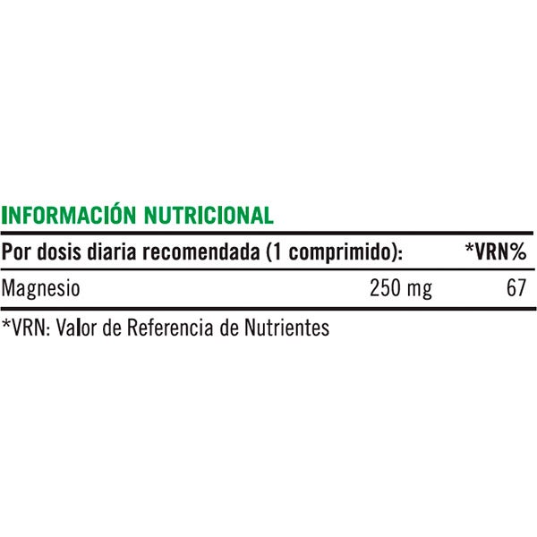 INGREDIENTES: Magnesio (óxido de magnesio), agentes de carga (celulosa microcristalina, maltodextrina), antiaglomerantes (estearato de magnesio vegetal, dióxido de silicio), agentes de recubrimiento (hidroxipropilmetilcelulosa, glicerina vegetal (aceite de colza), estabilizante (goma de celulosa reticulada).