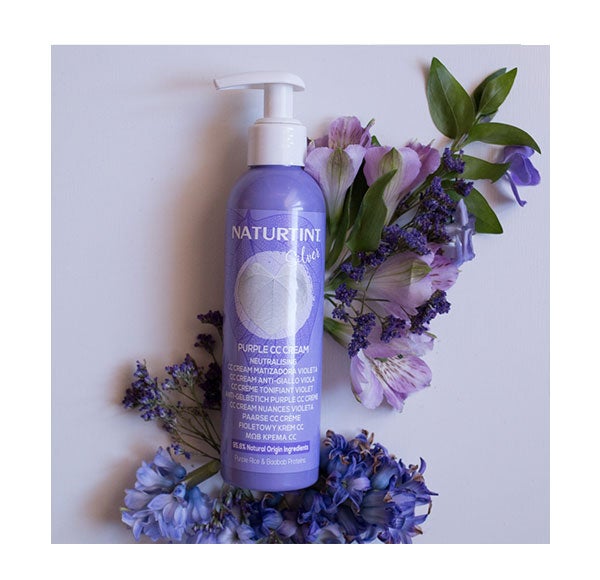 CC Cream violeta matizadora sin necesidad de enjuague, diseñada para neutralizar los reflejos amarillos y cobrizos no deseados en cabellos rubios, decolorados o blancos.