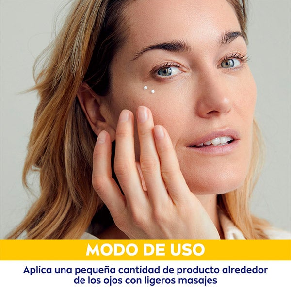 Colocar una pequeña cantidad del producto en el contorno de los ojos y masajear suavemente.