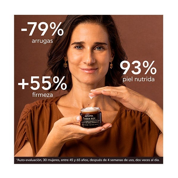 Hidrata, nutre y redensifica con Miel fermentada de APIVITA, escualano, aceite de oliva, cera de abeja y pantenol.