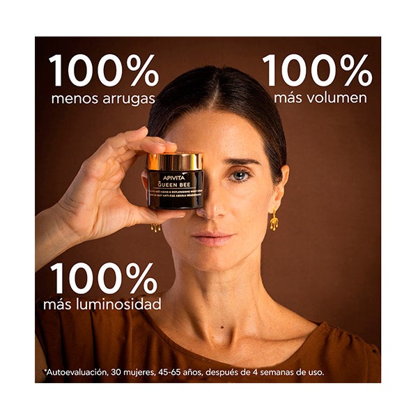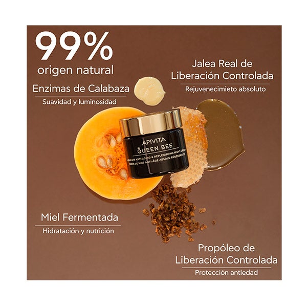 Esta crema de noche nutritiva ha sido creada con una doble tecnología patentada de liberación gradual, que proporciona a la piel una difusión continua y prolongada de jalea real y propóleo en alta concentración: