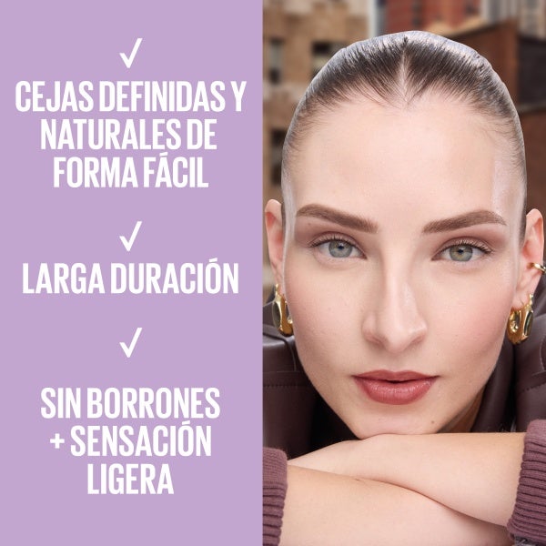 Realiza pequeños trazos siguiendo la línea natural de las cejas, rellena las zonas con menor densidad y termina peinando y difuminando con el cepillo integrado.