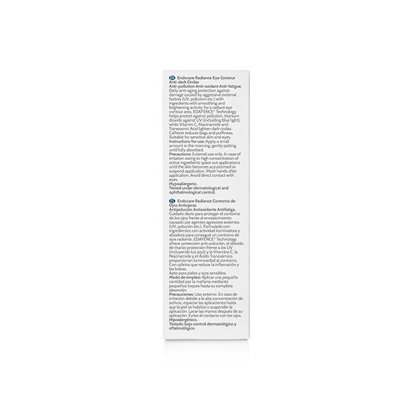 Además, contiene dióxido de titanio, que ofrece protección frente a la luz azul y disimula las ojeras, junto con cafeína y un sistema anti-edema para atenuar bolsas y ojeras. Su fórmula incluye niacinamida, ácido tranexámico y antioxidantes que aportan luminosidad al área del contorno y uniforman el tono cutáneo.