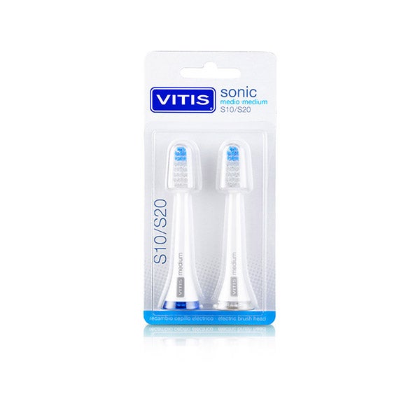 Vitis Sonic Recambio Cabezal Medio Cepillo S10/S20 dispone de filamentos de intensidad media que permiten eliminar la placa bacteriana con gran eficacia.