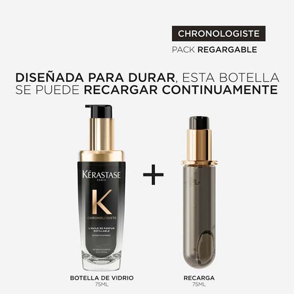 Enriquecido con extracto de mirra, Kérastase Chronologiste L'Huile de Parfum es un aceite perfumado para el cabello que combina refinadas notas de fragancias exclusivas: Rosa de Té, maderas suaves y almizcle. Unas pocas gotas bastan para que el cabello recupere vitalidad, hidratación y cuerpo, envolviéndose en un delicado aroma.