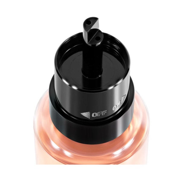 Su botella rectangular de tapón ovalado se distingue por la delicada unión que enlaza ambos elementos, un símbolo de perpetuidad. Además, resalta el contraste entre sus tonalidades clave, rosa nude y negro, que evocan emoción y fortaleza respectivamente.