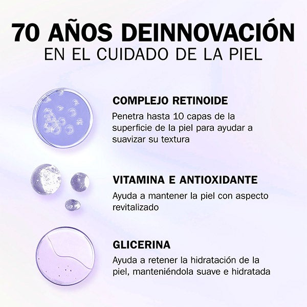 Su fórmula exclusiva une la Vitamina B3 con el Complejo Retinoide para ofrecer resultados visibles.