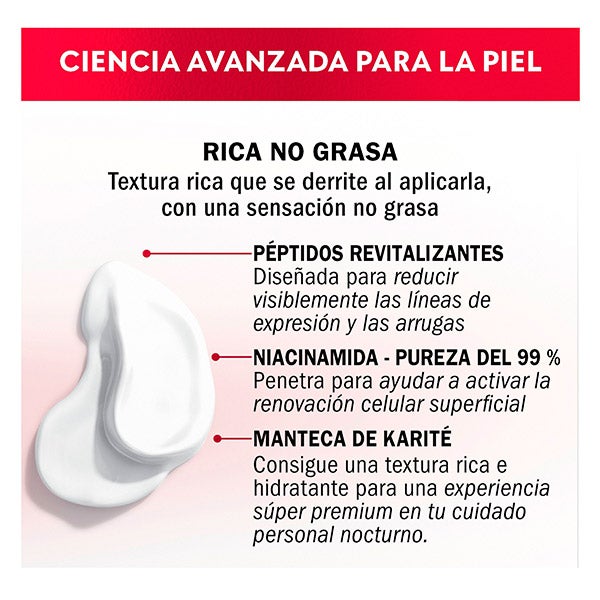Su fórmula con vitamina B3 (niacinamida) y péptidos de Olay actúa en las capas superficiales de la piel, favoreciendo la renovación celular para un aspecto más revitalizado.