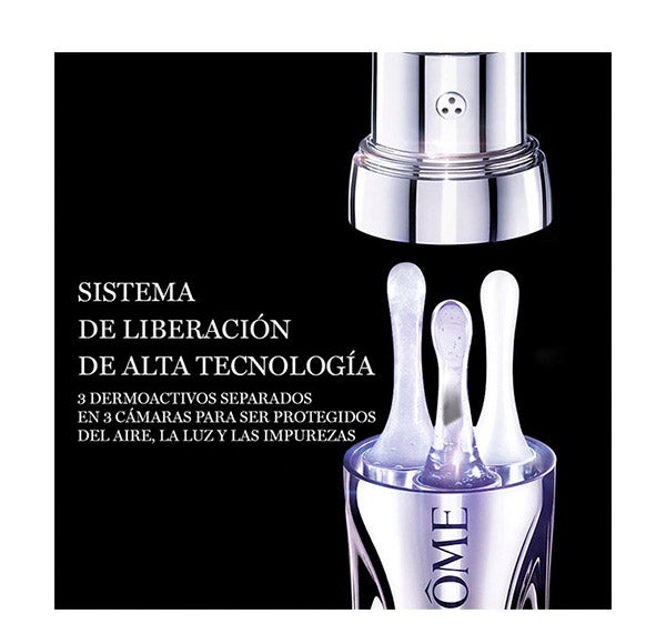 Con 3 años de investigación detrás, Lancôme presenta un frasco de ingeniería de precisión que permite combinar tres poderosos activos antes incompatibles. Cada ingrediente está aislado en su cámara individual, resguardado del aire, la luz y las impurezas, preservando su concentración óptima para mantener eficacia y seguridad.