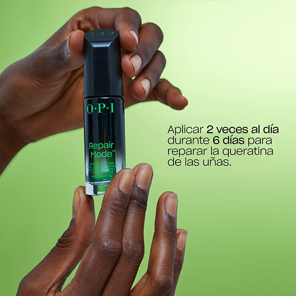 OPI Repair Mode incorpora la tecnología exclusiva Ulti-Plex Technology™, diseñada para restaurar la estructura de la queratina de las uñas al penetrar en su superficie y generar nuevos enlaces dentro de la uña natural. ¿Quieres hacer un CTRL + ALT + DEL al daño visible? Repair Mode™ es la respuesta. ¿Deseas proteger tus uñas frente al desgaste causado por el lavado frecuente o el contacto con productos de limpieza? ¡Has acertado otra vez! Repair Mode™. Este tratamiento en suero logra reparar el 99% de la queratina y proporciona resultados visibles desde la primera aplicación. Con el uso continuo, las uñas se vuelven más suaves, fuertes, resistentes a las roturas y con un aspecto más uniforme y saludable.