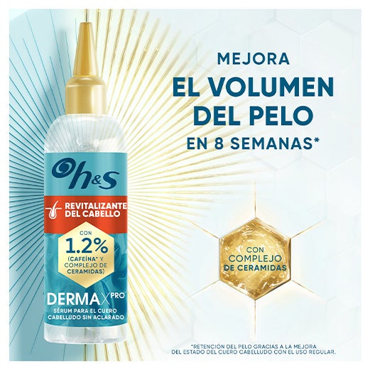 Para obtener mejores resultados, úsalo junto con el champú y el acondicionador hidratante H&S DERMAXPRO, contribuyendo a fortalecer el crecimiento y disminuir hasta un 95% la caída del cabello causada por la rotura.