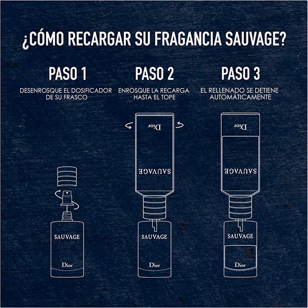 Ahora recargable, el formato de 100 ml de Sauvage Parfum se integra en el compromiso de ecodiseño de la Maison Dior. Sencilla de usar, la recarga permite dar nueva vida al frasco original una vez finalizado.