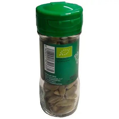 Cardamomo 100% ecológico, en tarro de cristal y tapón doble apertura.