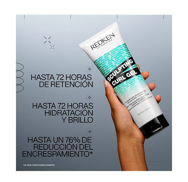 Redken Sculpting Curl Gel ofrece una fórmula eficaz que protege los rizos del encrespamiento hasta por 72 horas. Gracias a su combinación avanzada de escualeno y aceite de jojoba, ayuda a fijar el peinado mientras moldea y sella los rizos, evitando el frizz y manteniendo el cabello suave y fácil de manejar.
