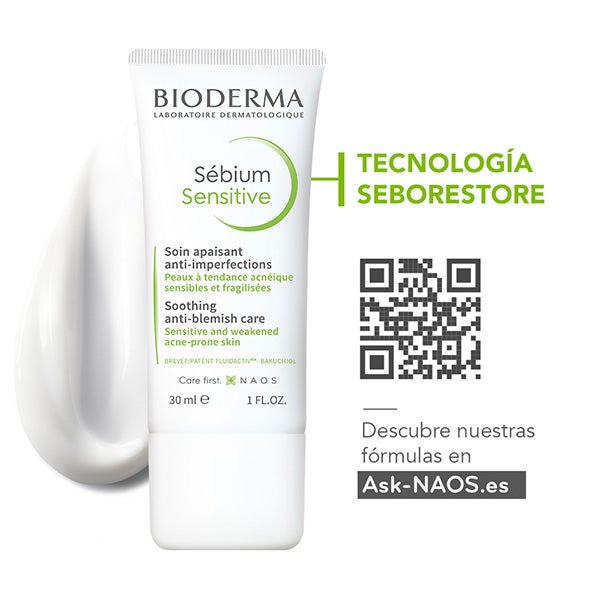 Sébium Sensitive es un cuidado calmante pensado para tratar las causas principales de la sensibilidad y las imperfecciones en pieles con tendencia acneica. Restituye la hidratación y contribuye a reducir el enrojecimiento y las marcas provocadas por las imperfecciones. Fórmula no comedogénica.