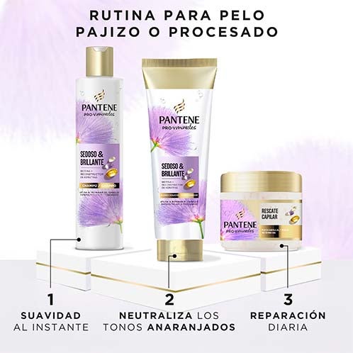 ¿Sueñas con un cabello increíblemente suave y sedoso? Con el acondicionador Pantene Sedoso Y Brillante podrás devolver a tu melena decolorada o sin vida un aspecto luminoso y lleno de vitalidad. Su fórmula enriquecida con biotina y keratina reparadora, que concentra aún más el poder de Pro-V, ha sido creada para ayudar a restaurar el cabello tratado y conseguir una suavidad que recuerda a la seda.