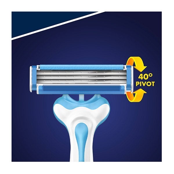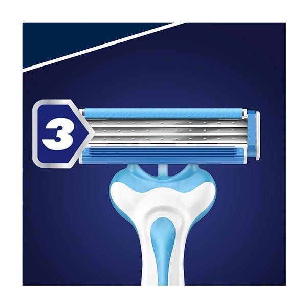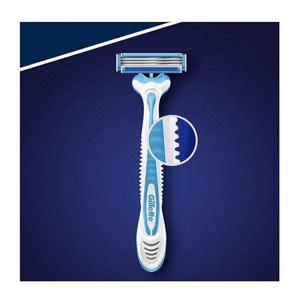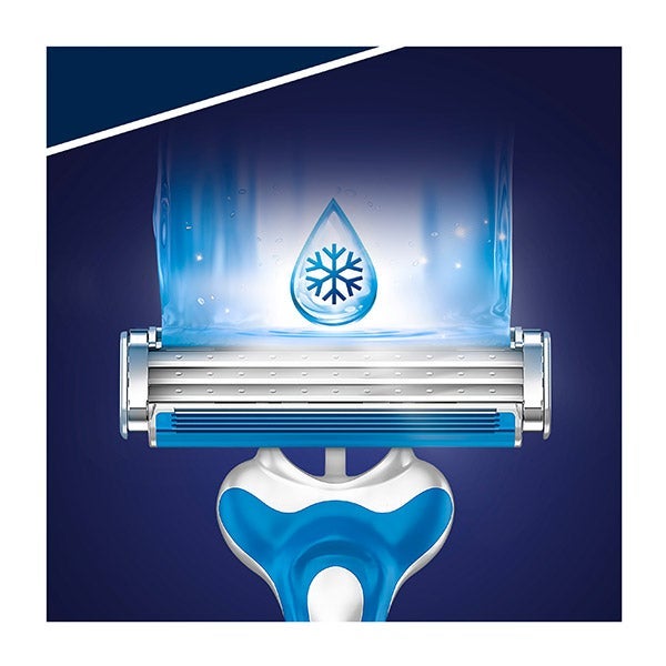 Sensor3 Cool de Gillette cuenta con tres hojas sensibles al contacto con la piel, recubiertas de cromo, y un cabezal pivotante que se ajusta fácilmente a las formas del rostro. Su banda lubricante, con tecnología Comfortfresh activada por el agua, brinda una sensación de afeitado fresca y cómoda. El mango de goma antideslizante proporciona un agarre seguro y una óptima maniobrabilidad, mientras que las hojas resultan el doble de sencillas de enjuagar (comparadas con las de BlueII Plus). Este pack incluye 4 unidades.